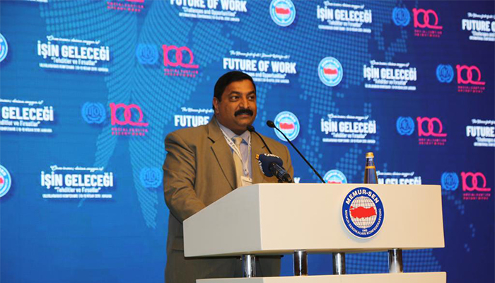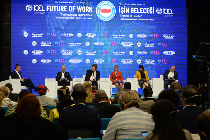 Memur-Sen Konfederasyonu tarafından ILO’nun 100’üncü yıldönümünde, “İnsana yakışır iş” gündemine katkıda bulunmak için, “İşin Geleceği: Tehditler ve Fırsatlar” temasıyla organize edilen uluslararası konferans Memur-Sen Genel Merkezi’ndeki konferans salonunda 107 ülkeden gelen 164 konfederasyon ve 13 bölgesel yapının katılımıyla başladı.