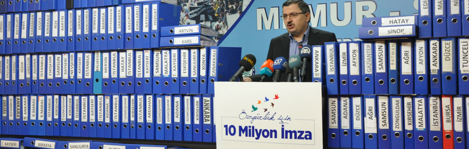 İllere göre tasnif edilen imzalar, klasörler haline getirildi. İmzalar Memur-Sen yönetimi tarafından başbakanlığa sunulacak. Gelişmelerle ilgili genel merkez binasında basın açıklaması yapan Memur-Sen Genel Başkanı Ahmet Gündoğdu, milletin üzerine düşen sorumluluğu yerine getirdiğini belirterek, şunları kaydetti: “Milletimiz, Özgürlük İçin 10 Milyon İmza Kampanyası’na katılarak üzerine düşeni yaptı. Memur-Sen olarak bizler de üyelerimize, ülkemize karşı bir sorumluluğumuzu daha yerine getirmiş olmanın vicdani rahatlığını yaşıyoruz. Milletimizin yasakların kaldırılmasına yönelik taleplerini, 12 milyon 300 bin imzalı dilekçe olarak Başbakanlık'a sunacağız. Bundan sonra sorumluluk hükümetindir, TBMM'nindir, siyaset kurumunundur.”